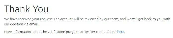 填完遞交後,Twitter會(huì)審核你≤∏♣™(nǐ)的(de)申請(qǐng),然後将結果通(tōng)過電(d±♠↓iàn)子(zǐ)郵件(jiàn)通(tōng)知(zhī)你(nφ★ǐ)。注:如(rú)果你(nǐ)被拒了(le),需要(§•εyào)在收到(dào)郵件(jiàn)30天後才能(néng)夠重新提交申 ₹•請(qǐng)。
