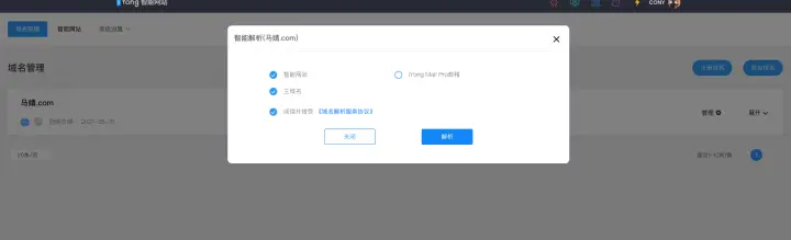 第三步,一(yī)鍵解析域名到(dào)智能(néng)網站(zhàn)。↓¶