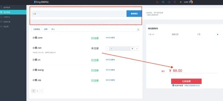輸入自(zì)己的(de)名字/喜歡域名,已經↔ 升級輕棧正式版的(de)用(yòng)戶可(kě)以用(y¥♣òng)域名優惠券抵扣費(fèi)用(yòng)。