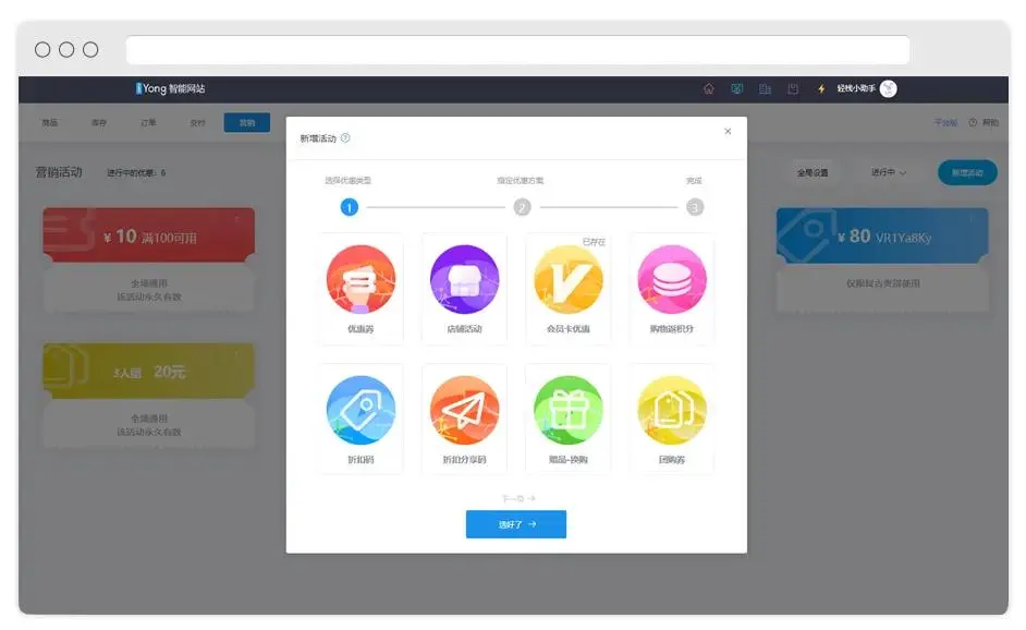 商家(jiā)進入【電(diàn)商系統】>>營銷活動,新增: