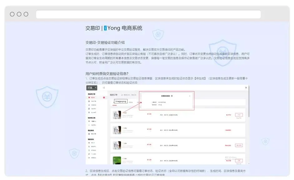 交易印功能(néng)增加交易雙方信任度,是(shì)區(q<© ū)塊鏈功能(néng)的(de)最新應用(yòng)€∏β,交易信息有(yǒu)全網背書(shū),這(zhè)個(gè)黑(hēi)科(kē)技(jì)你(nǐ)值得(de)擁有(yǒu),用(÷↕÷♠yòng)戶在【會(huì)員(yuán)中心】>€Ω✘λ;>我的(de)訂單複制(zhì)區(qū)塊信≤ε¥♥息并驗證: