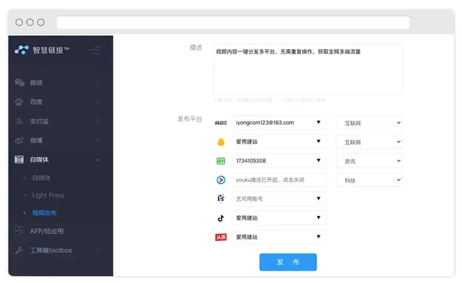 直接授權綁定頭條賬号,智慧鏈接升級成13+流量入口,全網視(shì)頻(pín§&★)一(yī)鍵發布的(de)範圍又(yòu)多(duō)了(le):